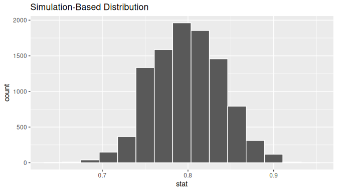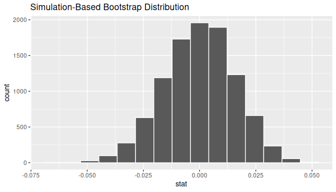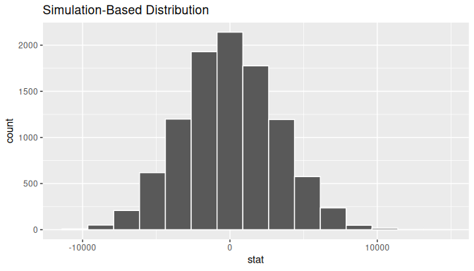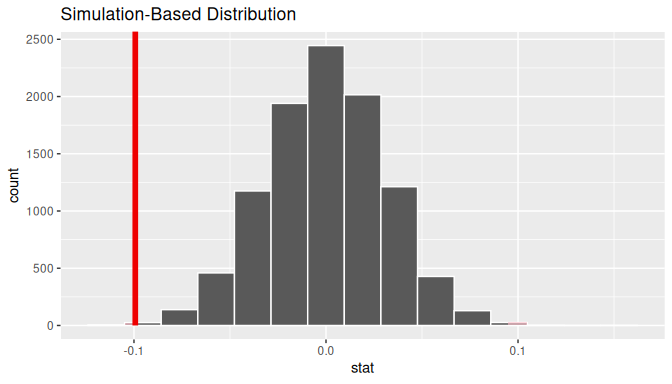 get_pvalue(obs_stat = d_hat, direction = "less")Warning: Please be cautious in reporting a p-value of 0. This result is an approximation based on the number of `reps` chosen in